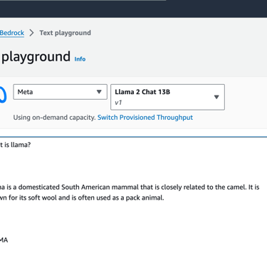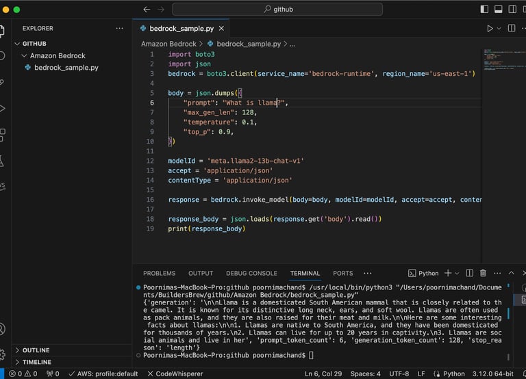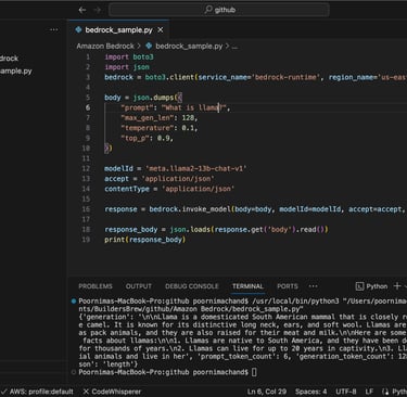 You can use the console playground to explore and experiment the models. To run inference using APIs, use the below code snippet (AWS python boto3 sample) from your local Integrated Development Environment (IDE).